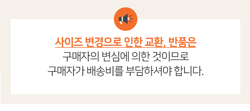 인한 무료 교환/반품(환불) 불가하며, 단순변심으로 판단되어 배송비는 구매자 부담입니다.