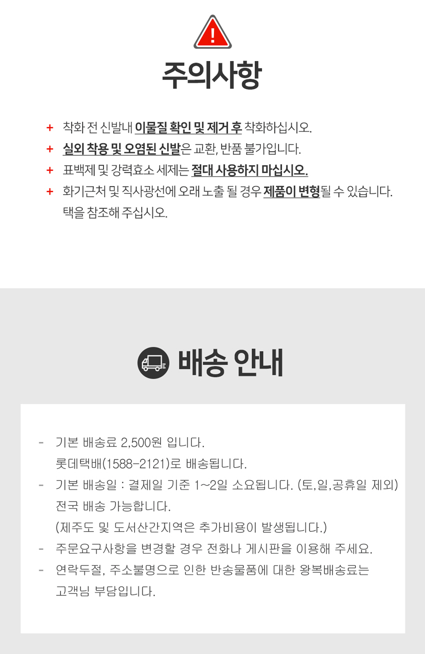 ~외부착화, 세탁, 수선등 신발을 변형할 경우